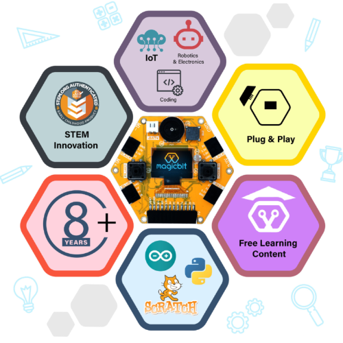 Unleash your potential with the Magicbit Master kit. Whether you’re into programming, electronics, IoT, or robotics, this kit provides you with the tools, knowledge, and inspiration to bring your ideas to life. Embark on a journey of discovery and innovation with this all-inclusive kit designed to spark your imagination and fuel your passion. The possibilities are limitless!